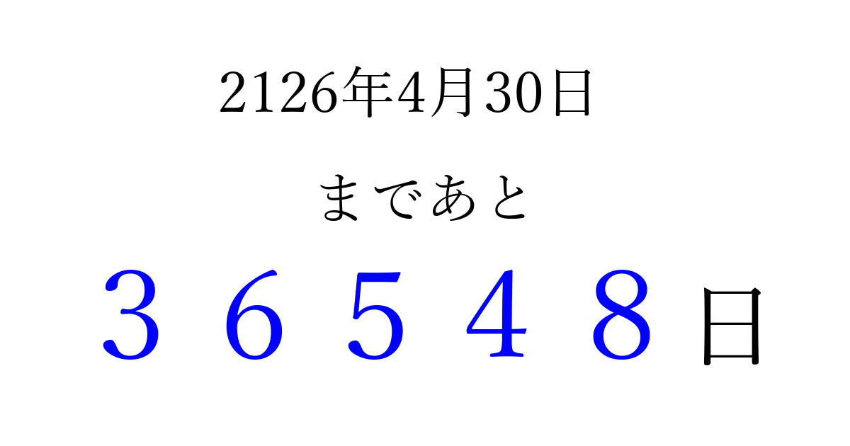 別の日付でカウントダウン 2126年4月のカレンダー